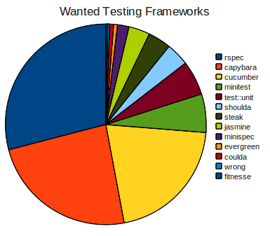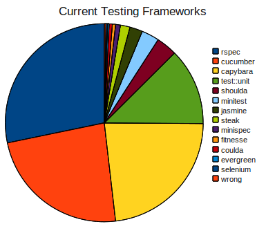 Here is the spreadsheet of results (with contact information and bad rows stripped). I didn't spend very much time making killer visualizations, and there are some great comments in there. Highly recommended to get a feel for what people are using. Someone else could probably create a correlation table of common tool sets. For example, showing that people who use RSpec commonly use a certain mocking framework. Also, there is geographic info there, so we can see which region is on the cutting edge… :)